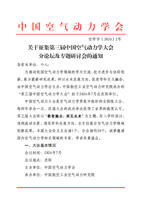 关于征集第三届中国空气动力学大会分论坛及专题研讨会的通知 平台管理员 2026-01-16